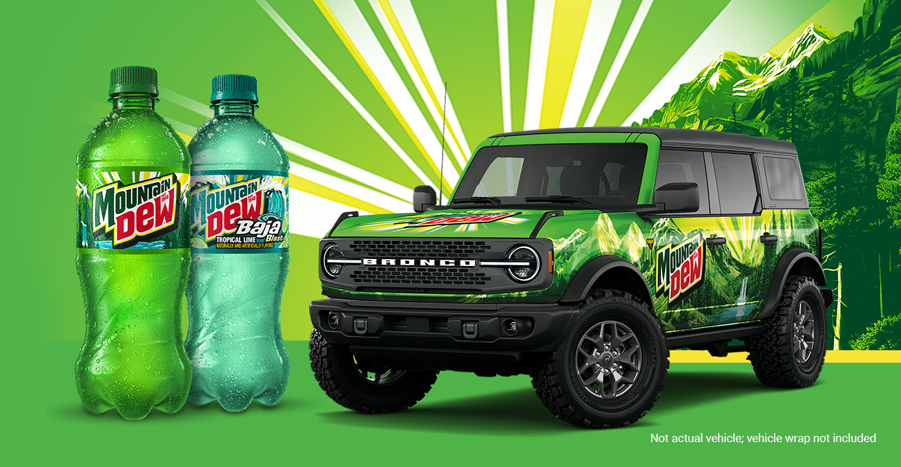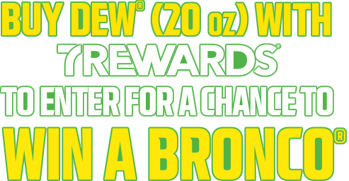 Buy Dew® (20oz) with 7REWARDS® to enter for a chance to win a Bronco®***